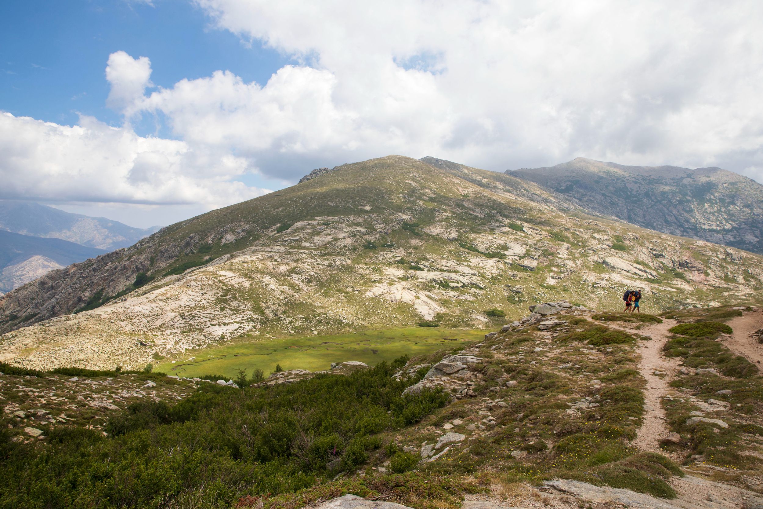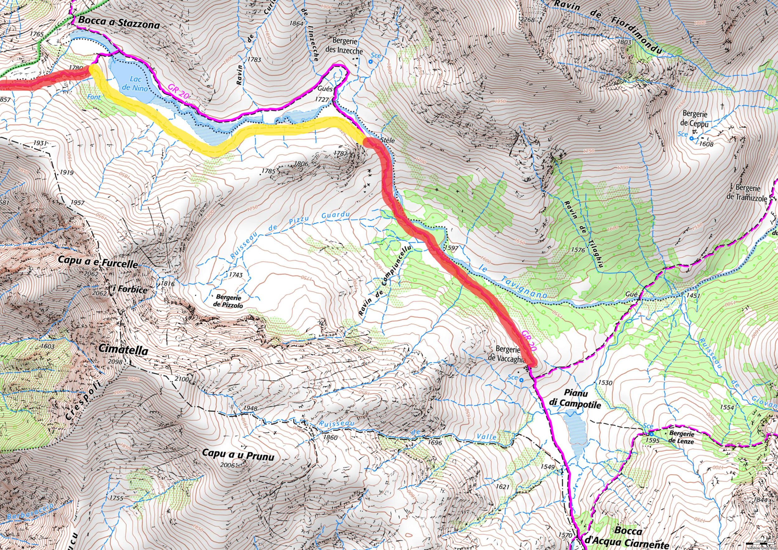 Former sheepfolds of Tilerga, yellow markup, then recovery of the GR 20 red and white markup.